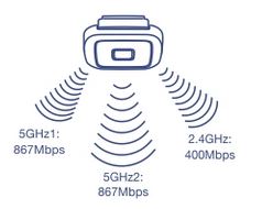 - AC2200 Tri-Band: 867Mbps (5GHz1) + 867Mbps (5GHz2) + 400Mbps (2.4GHz) bands